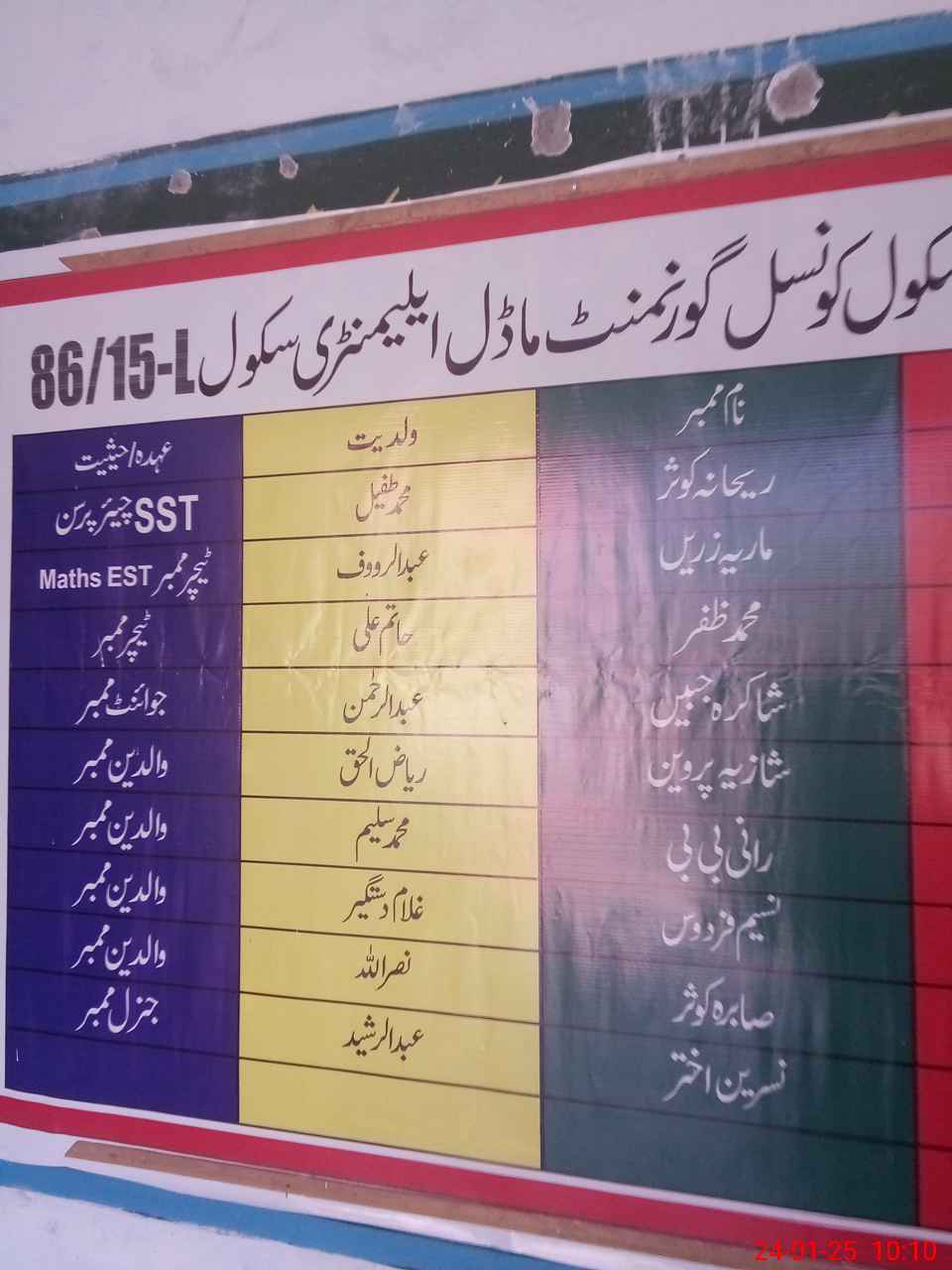 | EMIS Code: 36430288 | Name of School: GMES 86/15-L, P/O 84/15-L, MIAN CHANNU | |||