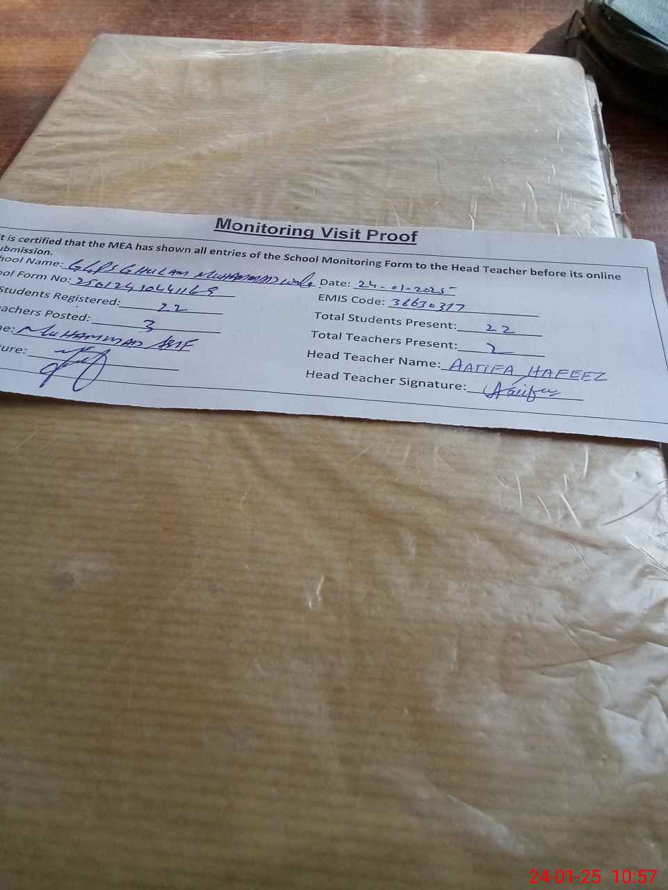 | EMIS Code: 36630317 | Name of School: GGPS GHULAM MUHAMMAD WALA | |||
