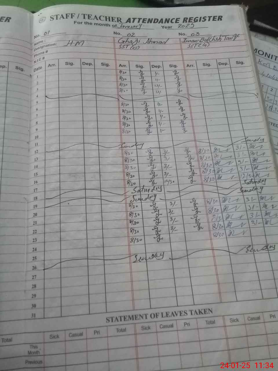 | CNIC | Full Name | Designation | R/C | Absence During Last Calender Month |