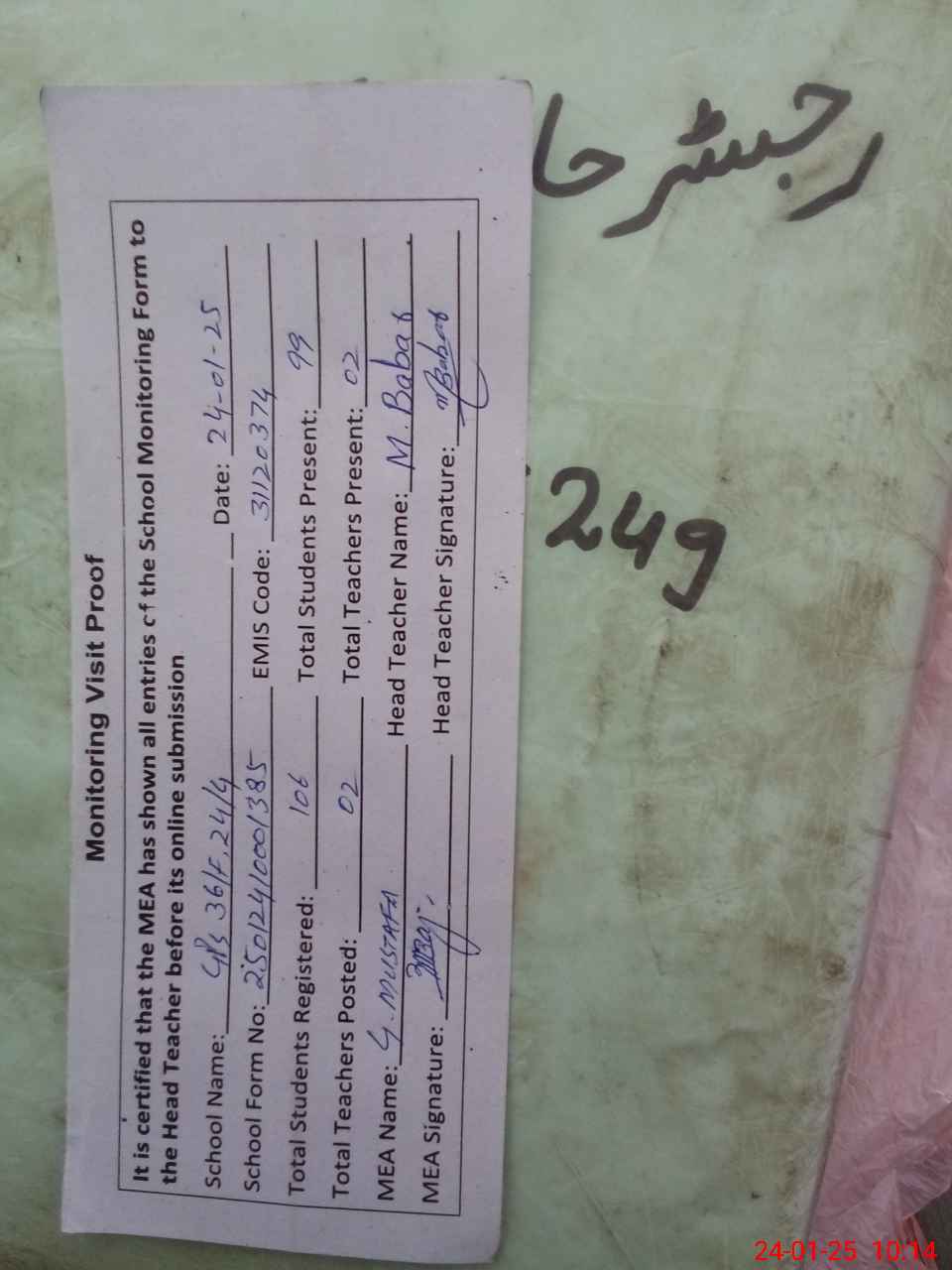 | EMIS Code: 31120374 | Name of School: GPS CHAK NO 36/F/24/G | |||