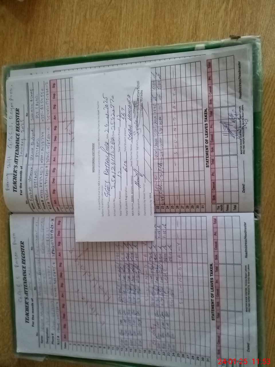 | Attendance Register | Head Teacher | MEA with School | Visit Proof |