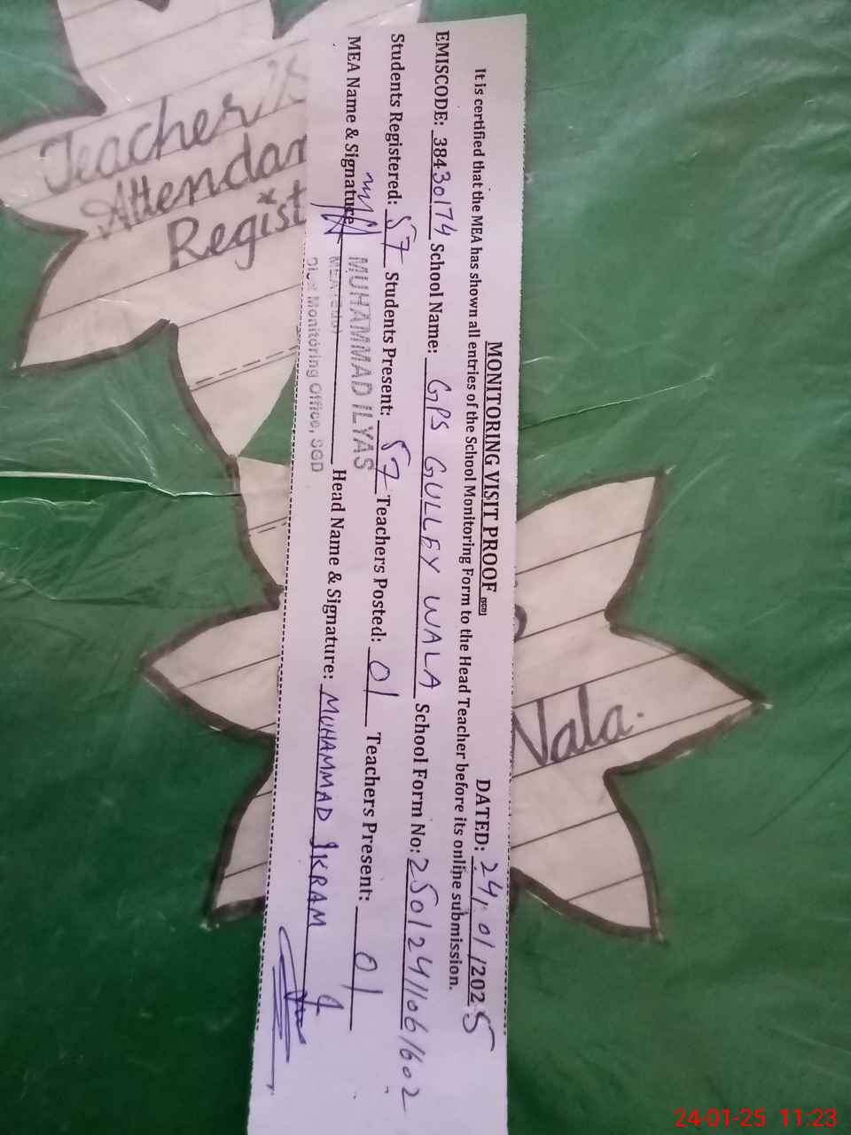 | EMIS Code: 38430174 | Name of School: GPS GULLEY WALA | |||