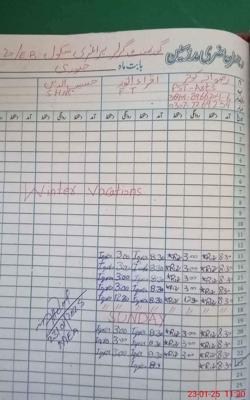 | Name: Sh**** Kh**** Designation: (School Headmaster's/Headmistress's) EST Phone/Cell Number: 03**** |