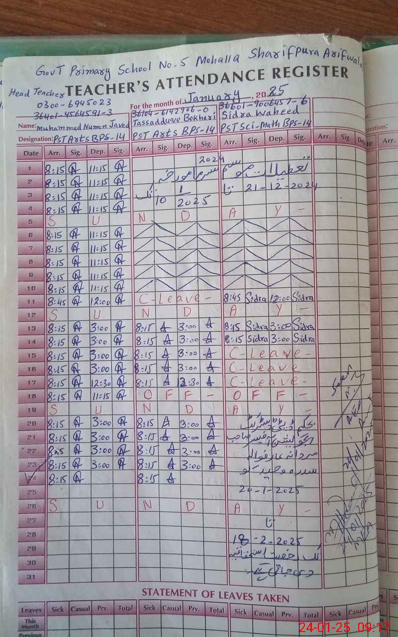 | Name: MU**** NA**** Designation: (School Headmaster's/Headmistress's) PST Phone/Cell Number: 03**** |