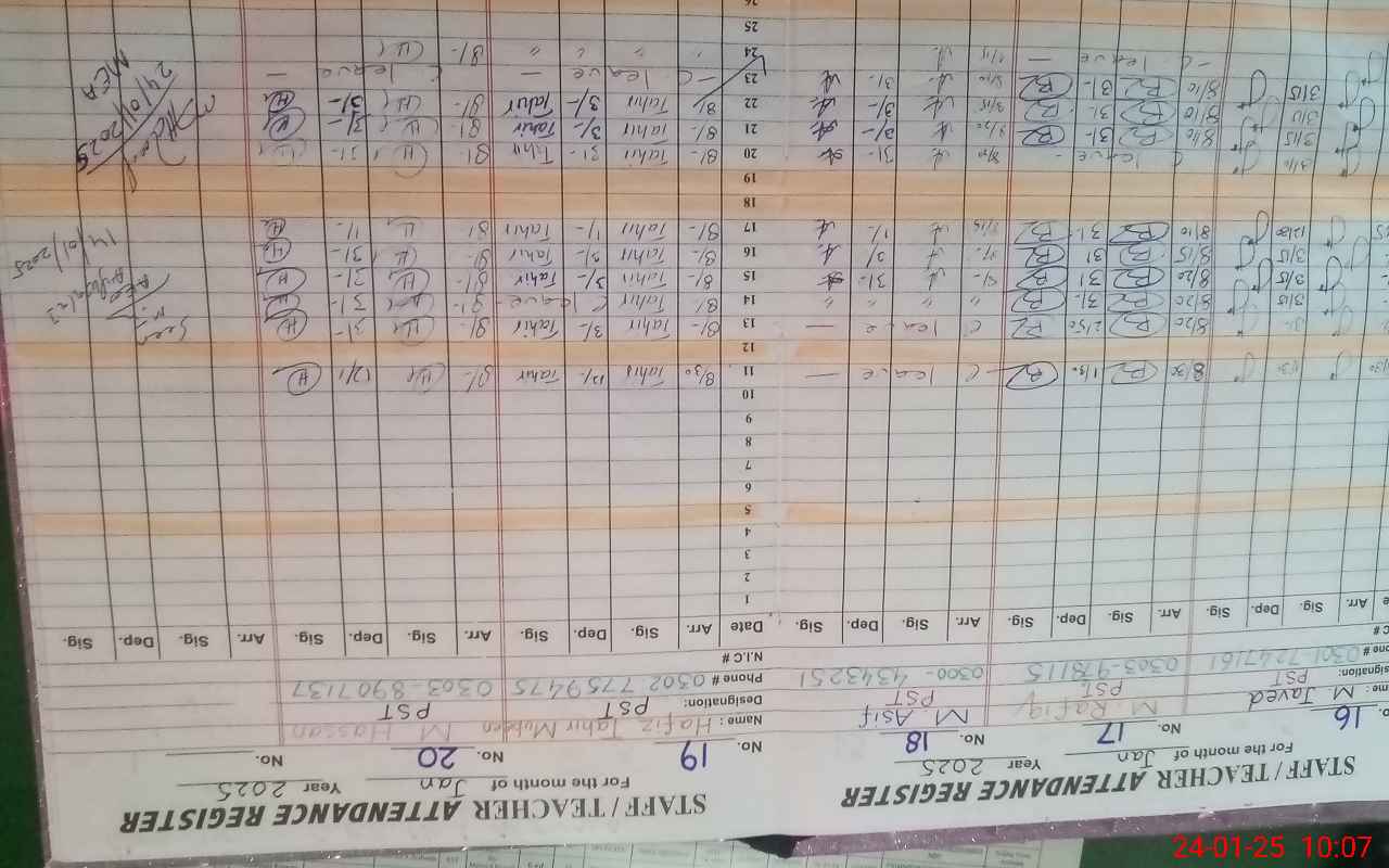 | CNIC | Full Name | Designation | R/C | Absence During Last Calender Month |