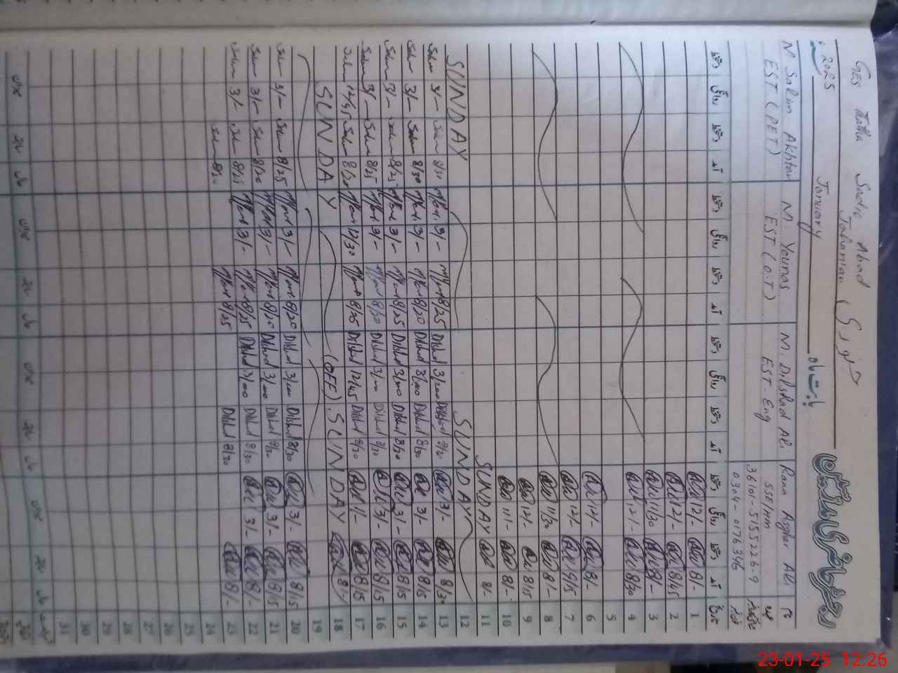 | CNIC | Full Name | Designation | R/C | Absence During Last Calender Month |