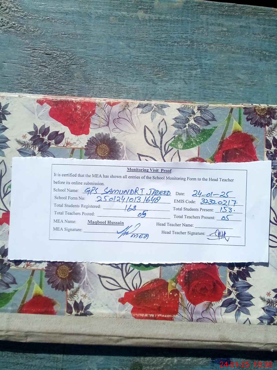 | EMIS Code: 32320217 | Name of School: GPS SAMUNDARY JADEED | |||