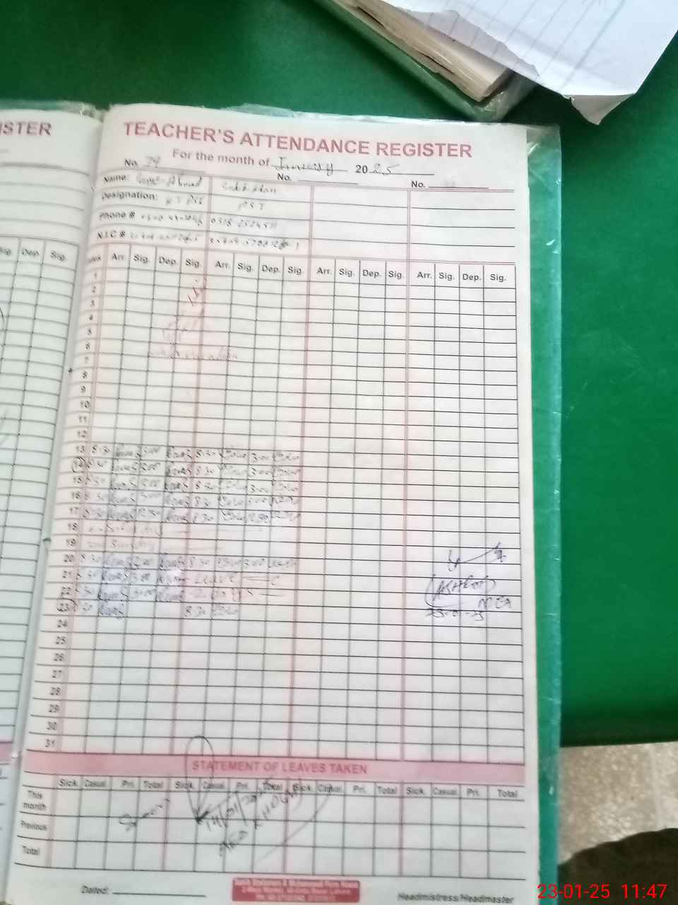 | Name: MAS**** Designation: (School Headmaster's/Headmistress's) PST Phone/Cell Number: 03**** |