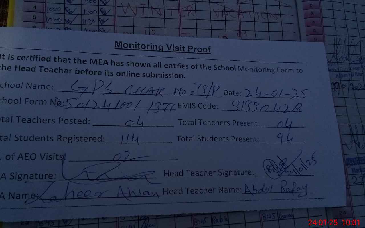 | Monitoring Date: 24-01-2025 | Start Time: 24-01-2025 09:26 AM | End Time: 24-01-2025 10:05 AM | Name of MEA: Za**** Ah**** | |