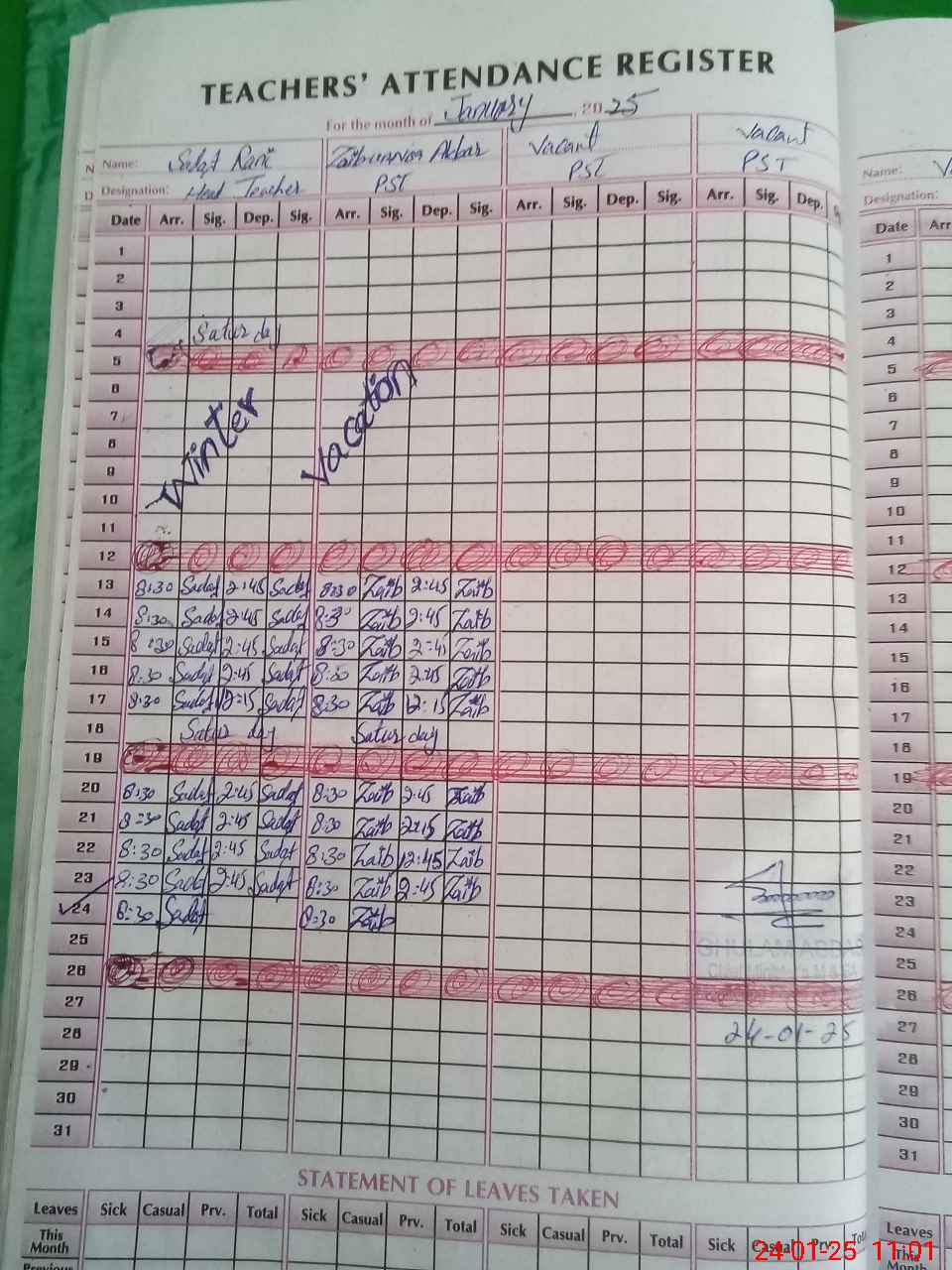 | Name: SA**** RA**** Designation: (School Headmaster's/Headmistress's) PST Phone/Cell Number: 03**** |