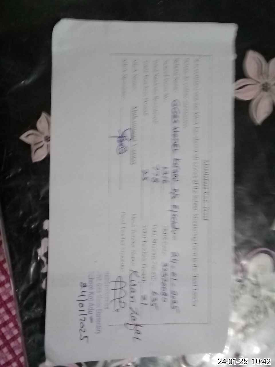 | Name: Ki**** Za**** Designation: (School Headmaster's/Headmistress's) Sst Phone/Cell Number: 03**** |