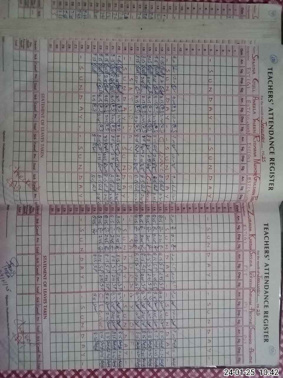 | CNIC | Full Name | Designation | R/C | Absence During Last Calender Month |