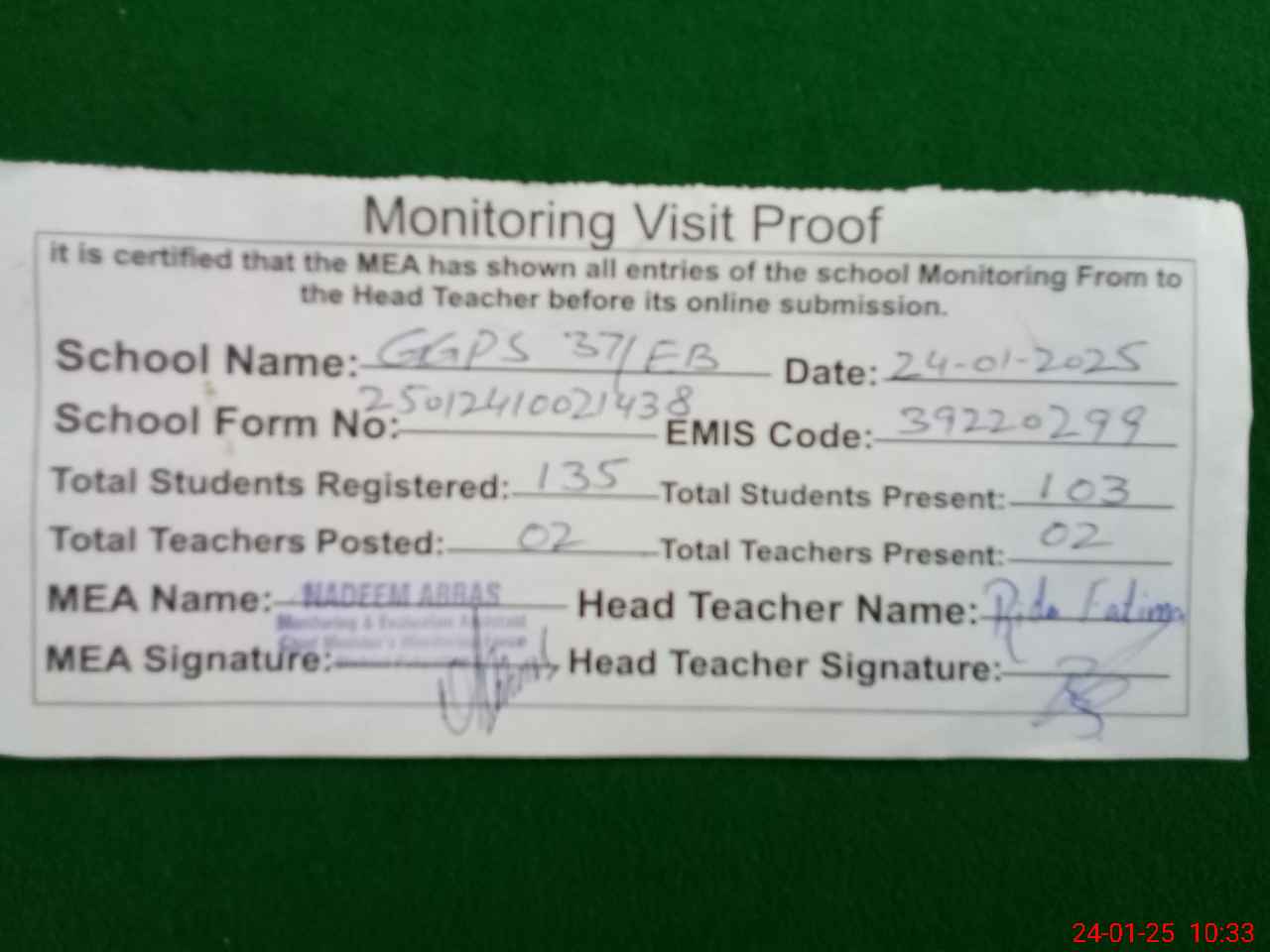 | EMIS Code: 39220299 | Name of School: GGPS 37 EB | |||