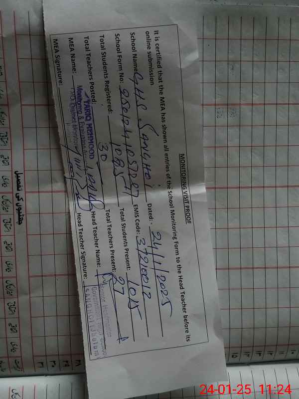 | Certified that this School was Inspected by the Undersigned MEA/DMO Today and the Information Stated Above is as Per Record. | |||||