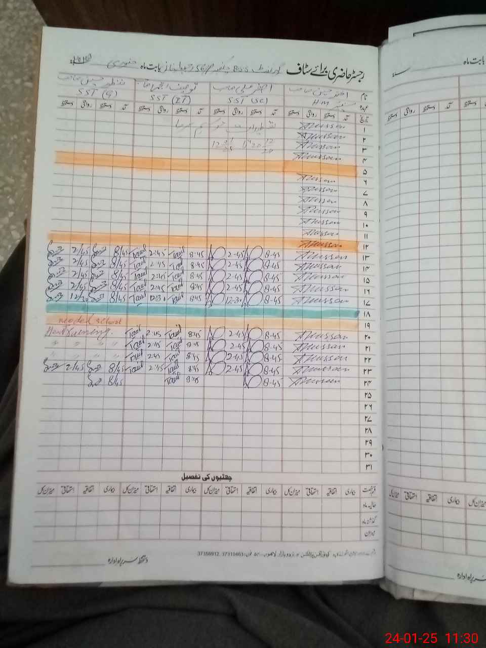 | CNIC | Full Name | Designation | R/C | Absence During Last Calender Month |