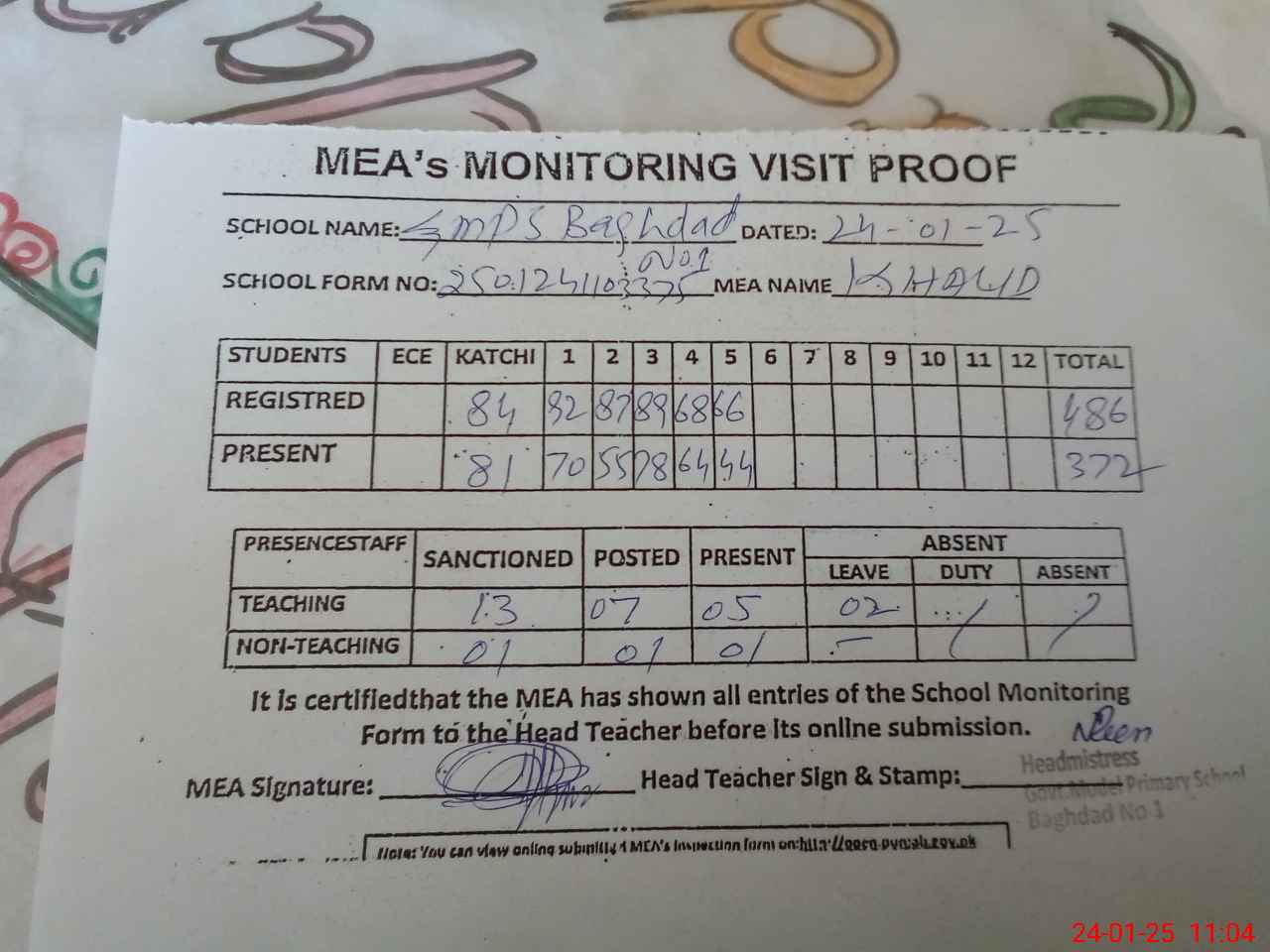 | EMIS Code: 36430390 | Name of School: GMPS BAGHDAD NO.1 TULAMBA | |||