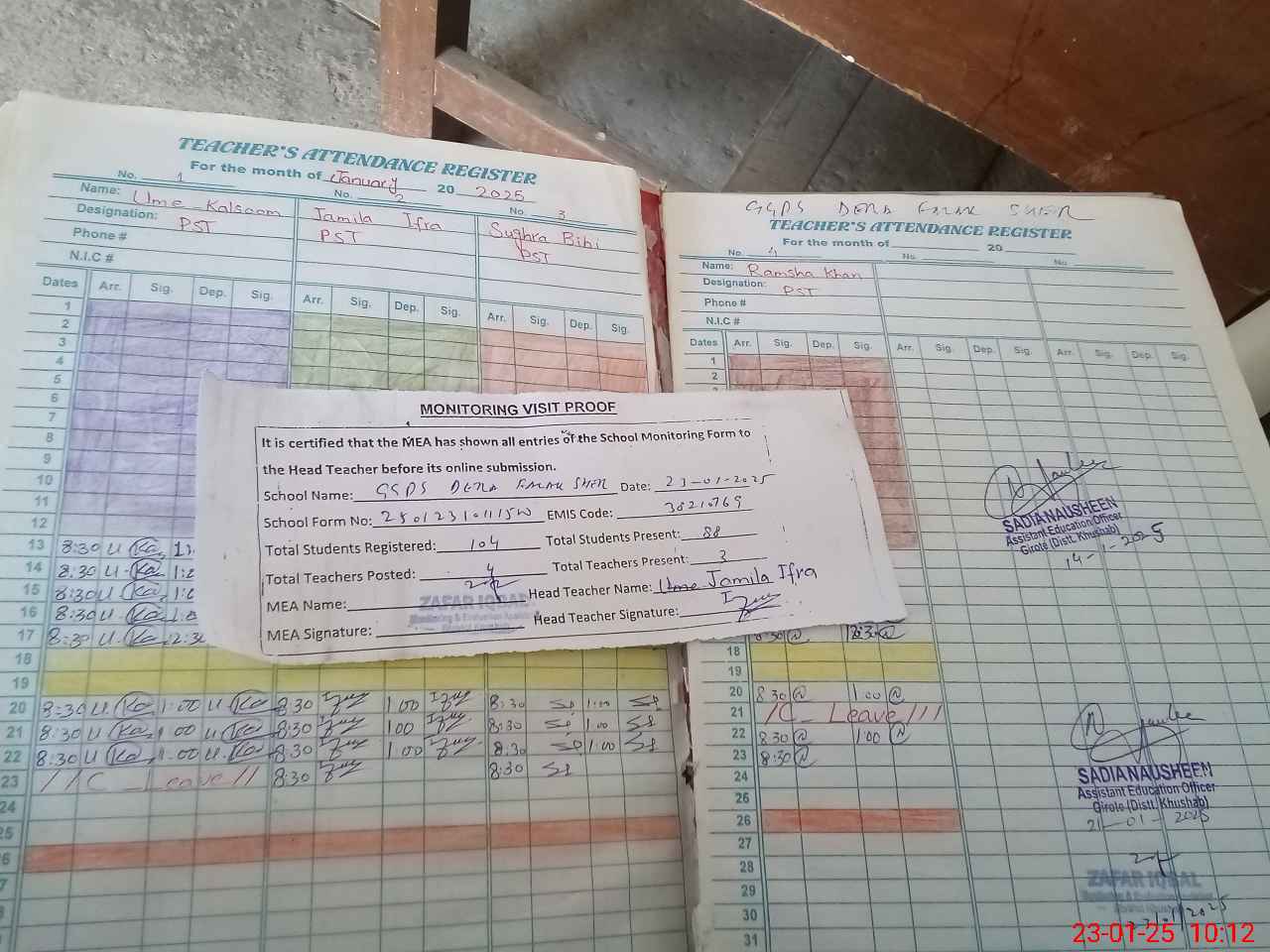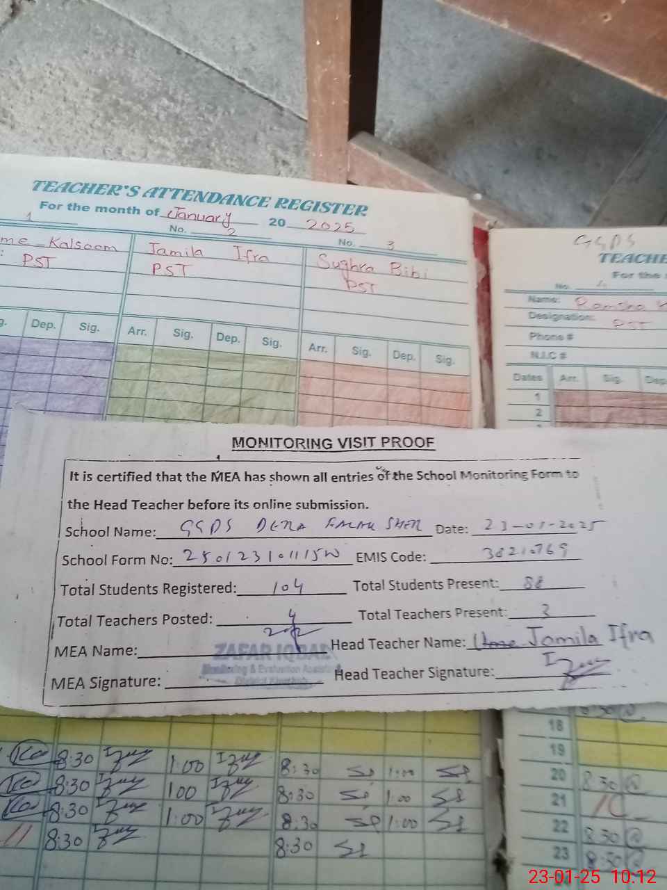 | Attendance Register | Head Teacher | MEA with School | Visit Proof |