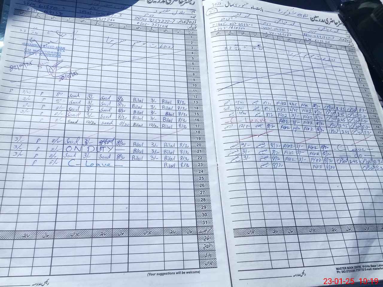| CNIC | Full Name | Designation | R/C | Absence During Last Calender Month |