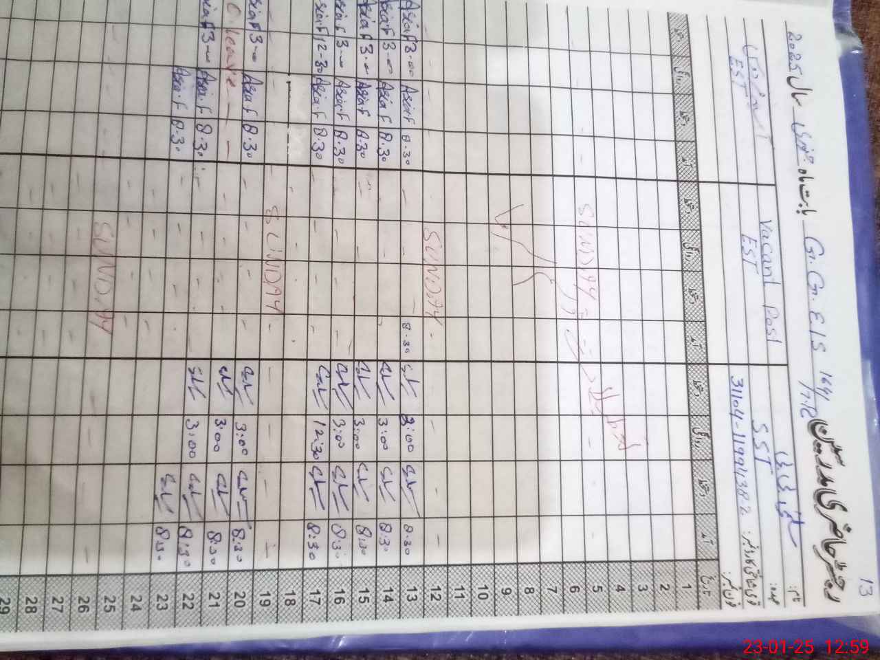 | CNIC | Full Name | Designation | R/C | Absence during last cal. month |