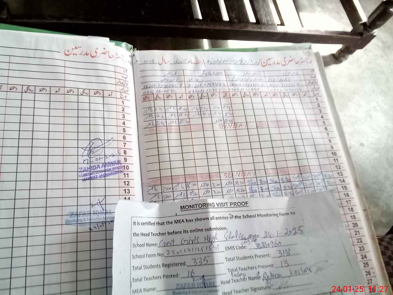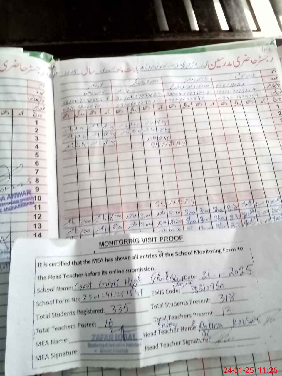 | Attendance Register | Head Teacher | MEA with School | Visit Proof |