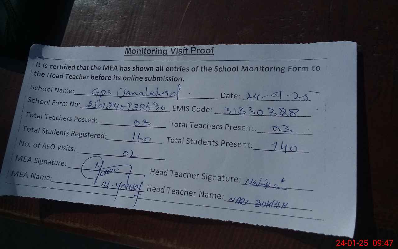 | EMIS Code: 31330388 | Name of School: GPS JAMAL ABAD | |||