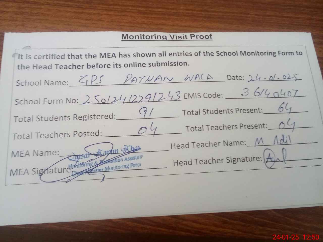 | EMIS Code: 36140407 | Name of School: GGPS Pathan Wala Multan | |||