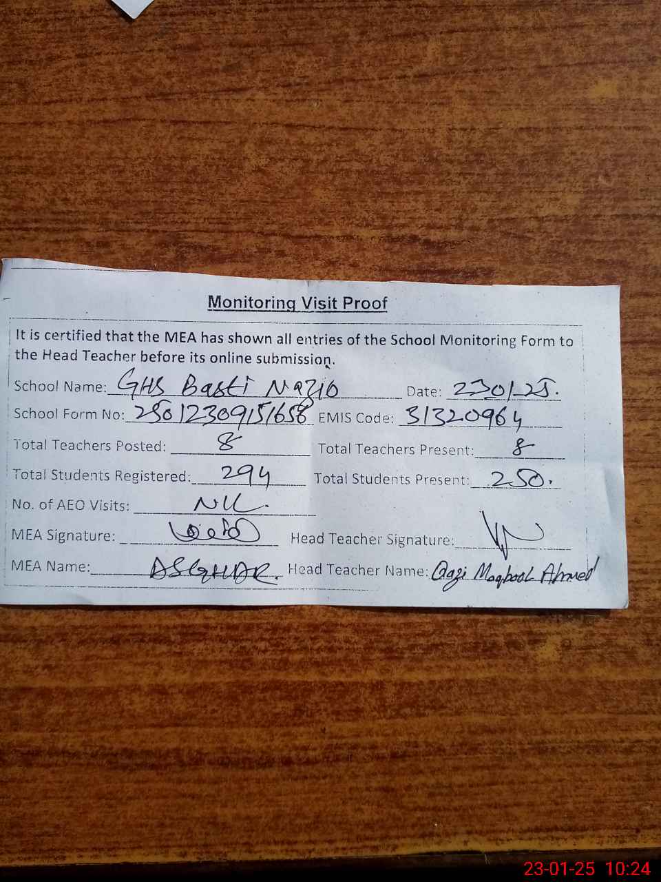 | EMIS Code: 31320964 | Name of School: GHS BASTI NAZIR KHAN | |||