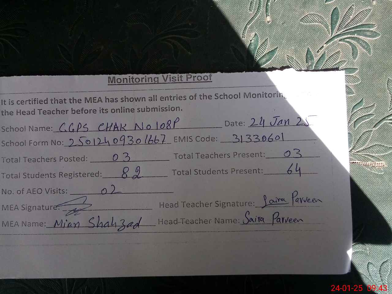 | EMIS Code: 31330601 | Name of School: GGPS CHAK NO. 108/P | |||