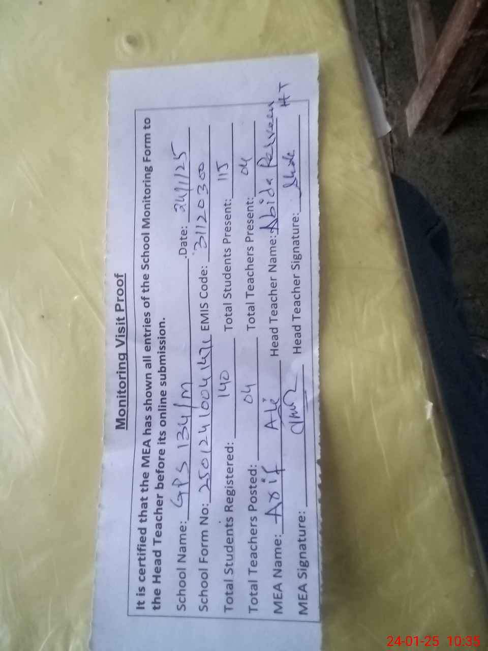 | Name: Ab**** Pa**** Designation: (School Headmaster's/Headmistress's) PST Phone/Cell Number: 03**** |