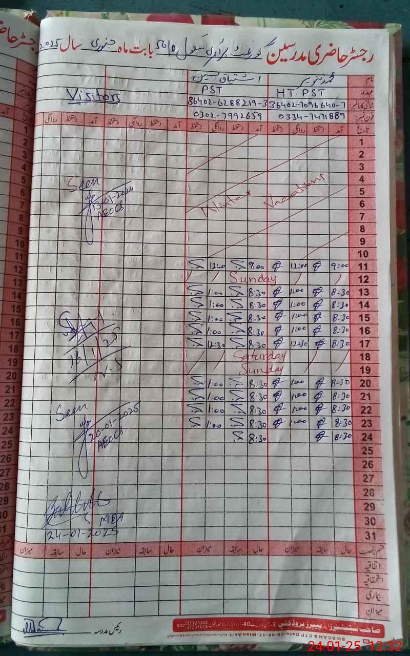 | Name: MTa**** Designation: (School Headmaster's/Headmistress's) PST Phone/Cell Number: 03**** |
