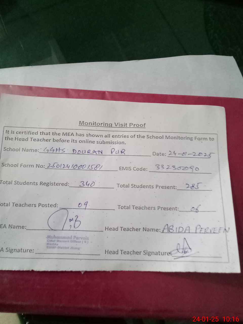 | EMIS Code: 33230090 | Name of School: GGHS DOURAN PUR | |||