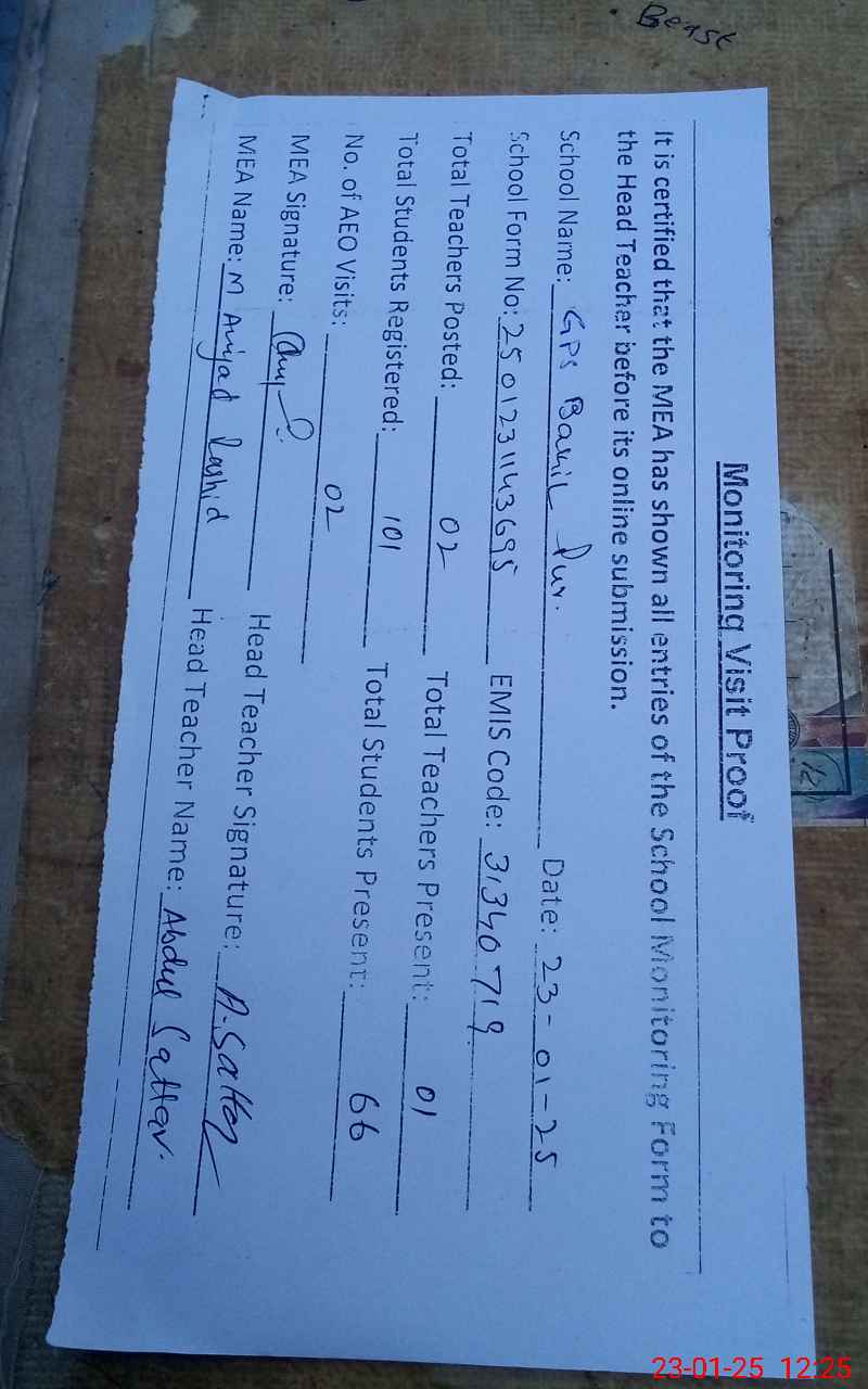 | EMIS Code: 31340719 | Name of School: GPS BAQIL PUR | |||