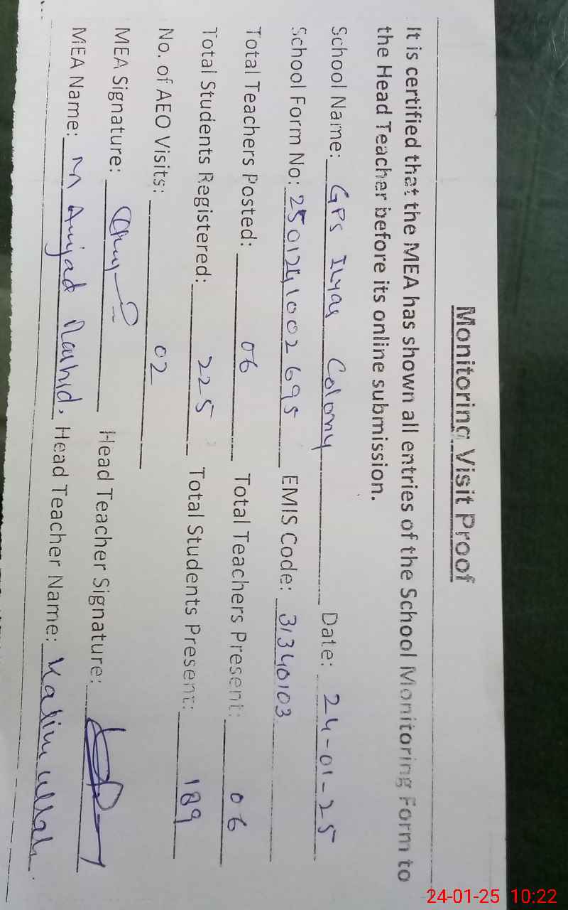 | EMIS Code: 31340103 | Name of School: GPS ALYAS COLONY | |||