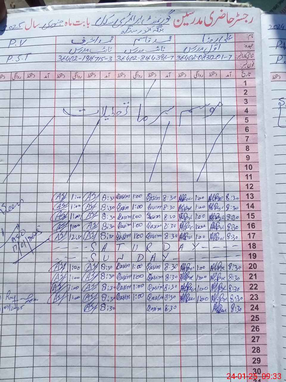 | Name: AL**** RA**** Designation: (School Headmaster's/Headmistress's) PST Phone/Cell Number: 03**** |