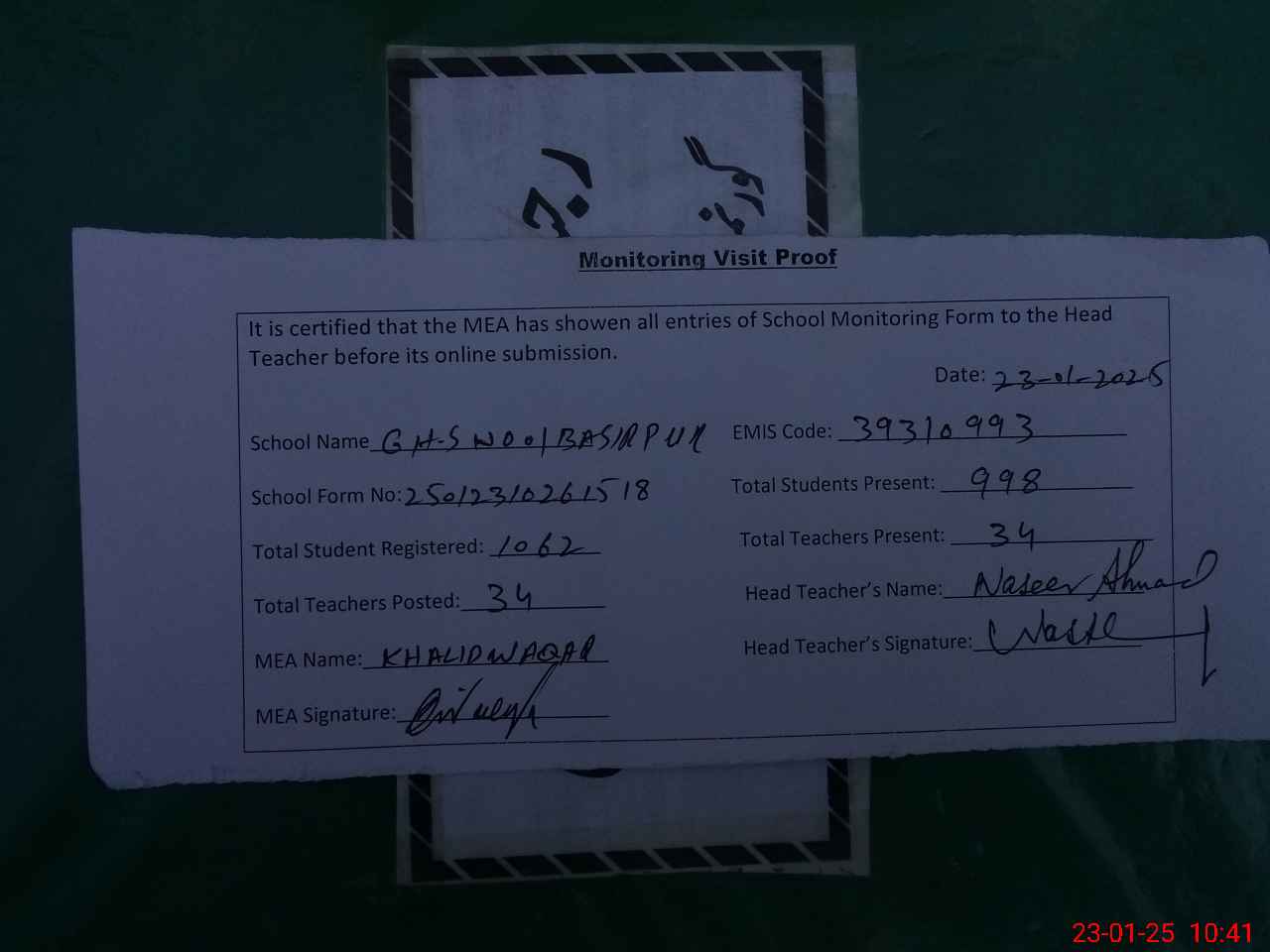 | EMIS Code: 39310993 | Name of School: GHS NO. 1 BASIR PUR MAIN ROAD | |||