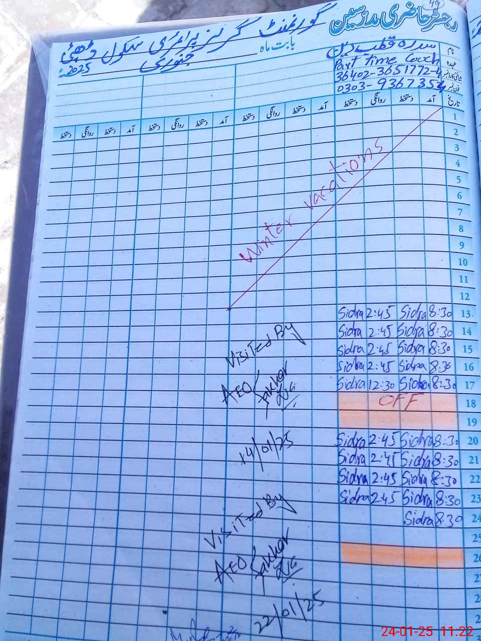 | Name: Sa**** Mu**** Designation: (School Headmaster's/Headmistress's) PST Phone/Cell Number: 03**** |