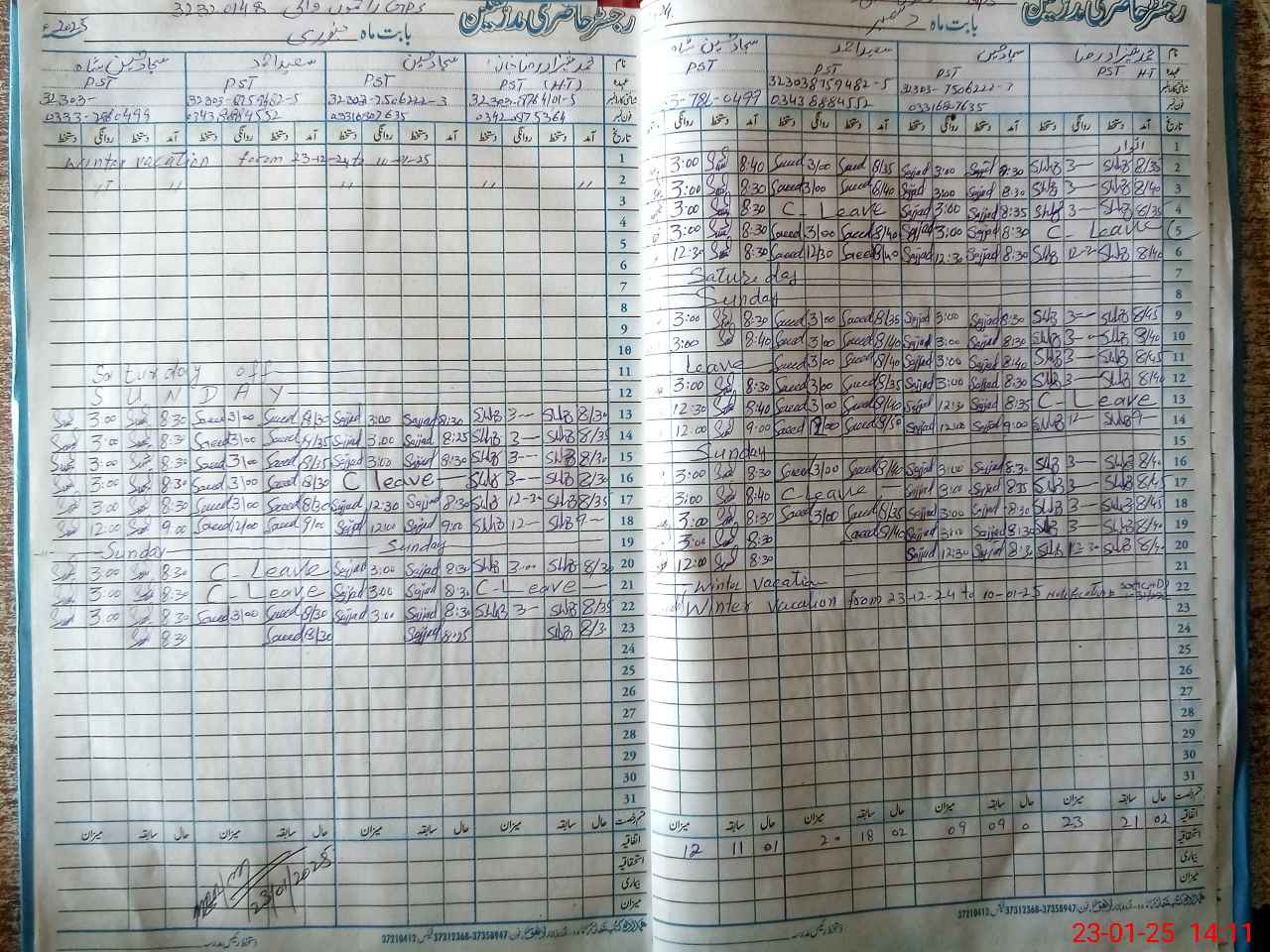 | CNIC | Full Name | Designation | R/C | Absence During Last Calender Month |