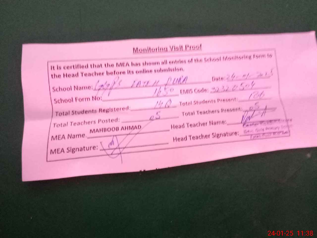 | EMIS Code: 32320504 | Name of School: GGPS FATEH PURA | |||