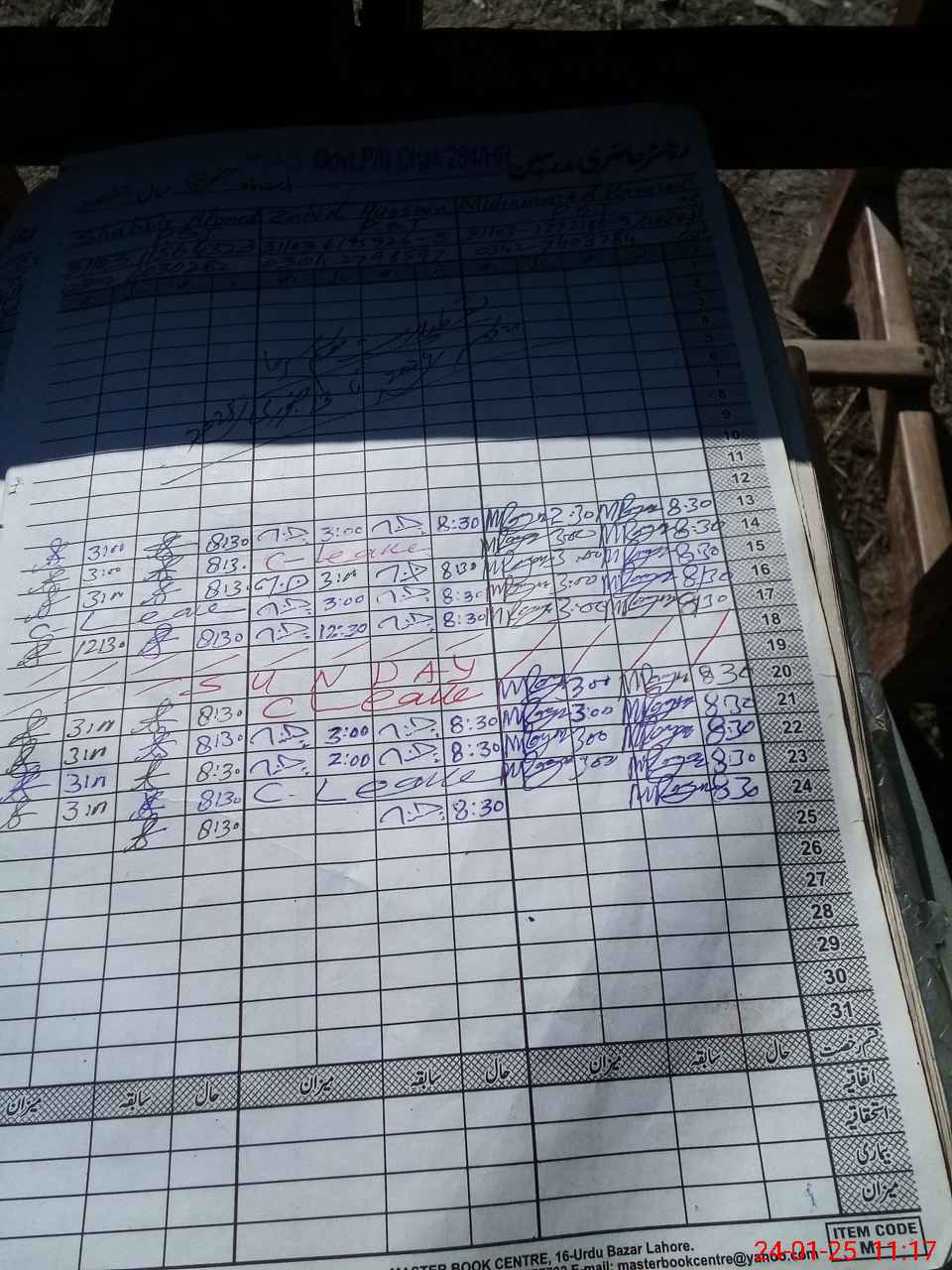 | CNIC | Full Name | Designation | R/C | Absence during last cal. month |