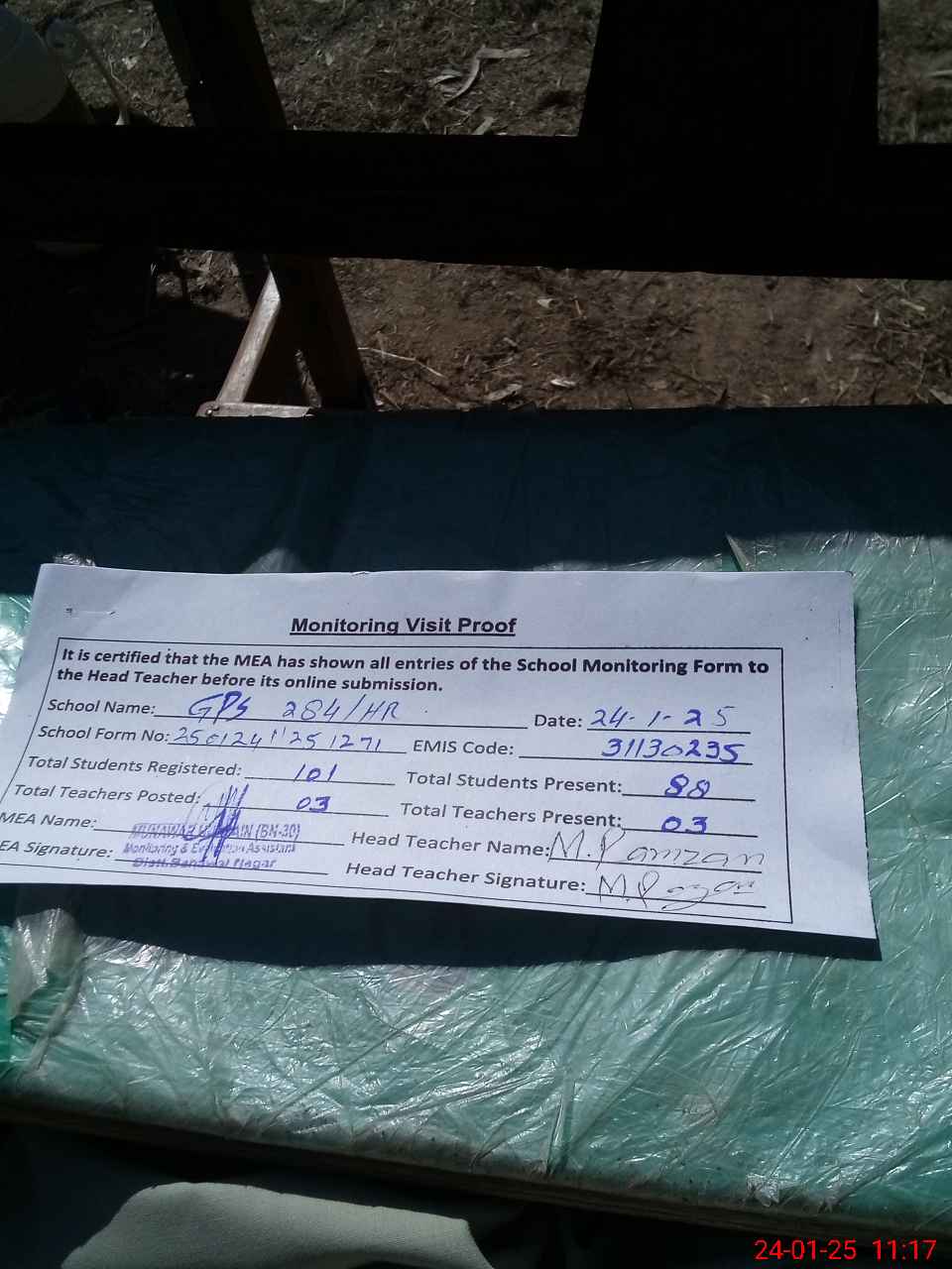 | Attendance Register | Head Teacher | MEA with School | Visit Proof |