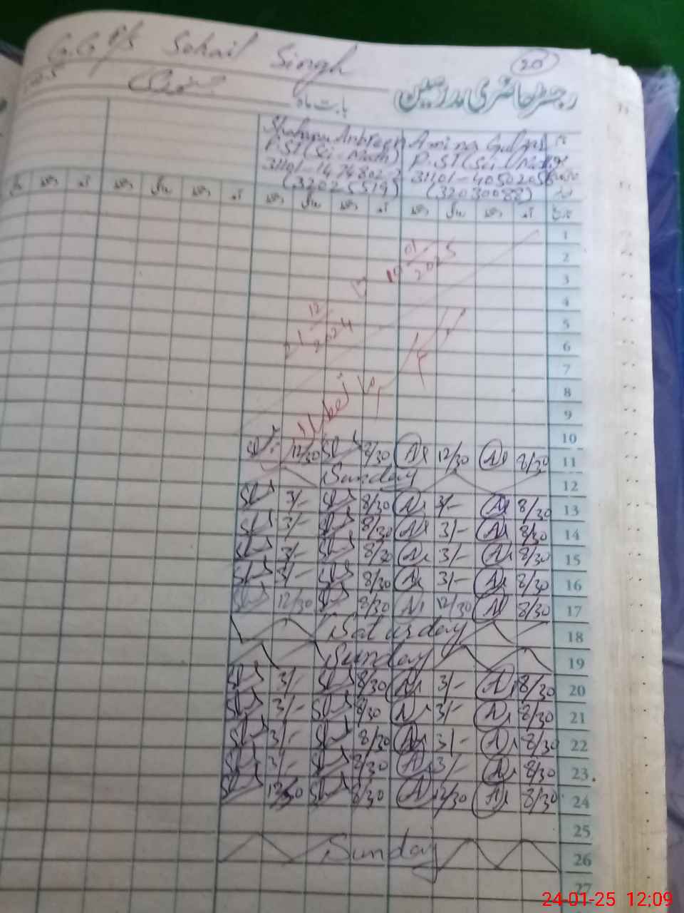 | CNIC | Full Name | Designation | R/C | Absence During Last Calender Month |