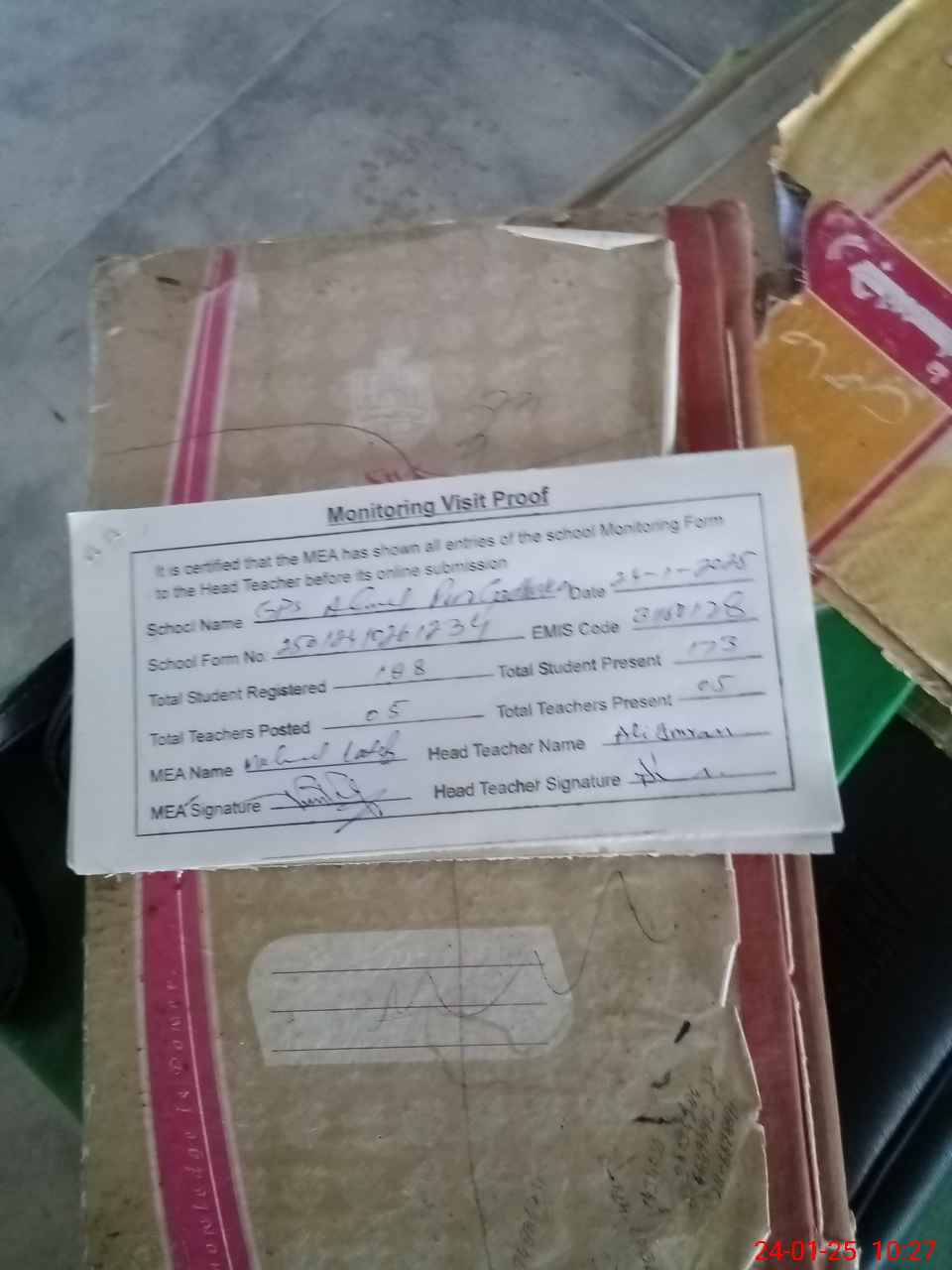 | Attendance Register | Head Teacher | MEA with School | Visit Proof |