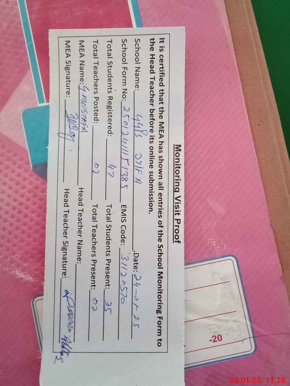 | EMIS Code: 31120570 | Name of School: GGPS CHAK NO. 37/FA | |||