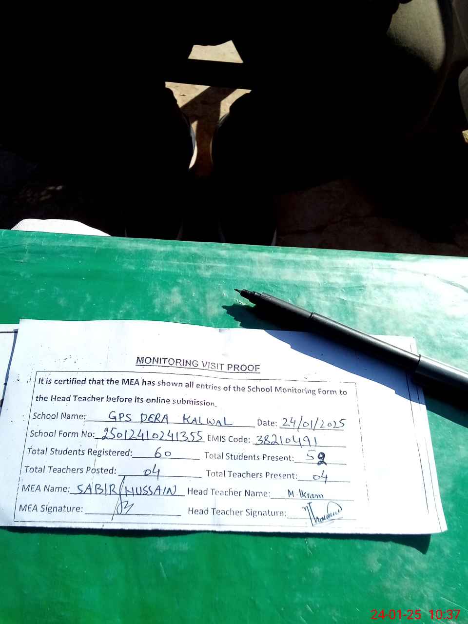 | Attendance Register | Head Teacher | MEA with School | Visit Proof |