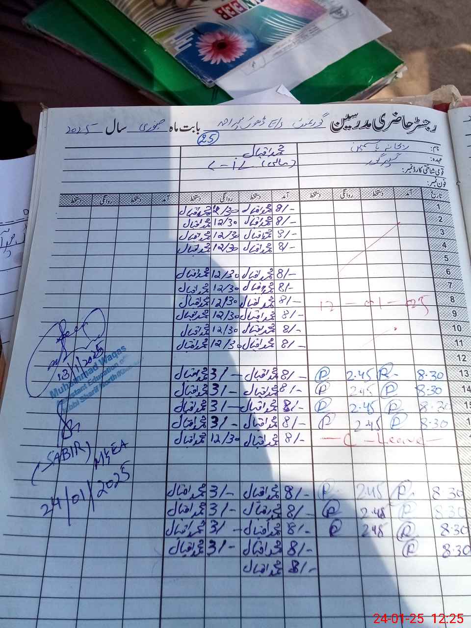 | CNIC | Full Name | Designation | R/C | Absence During Last Calender Month |
