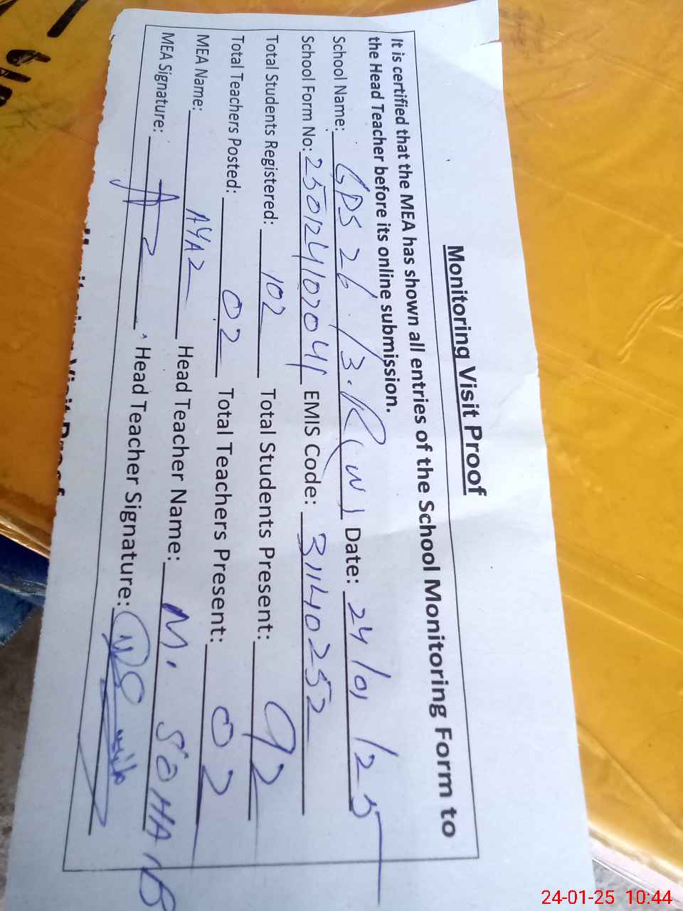 | EMIS Code: 31140252 | Name of School: GPS CHAK NO 26/3-R W | |||