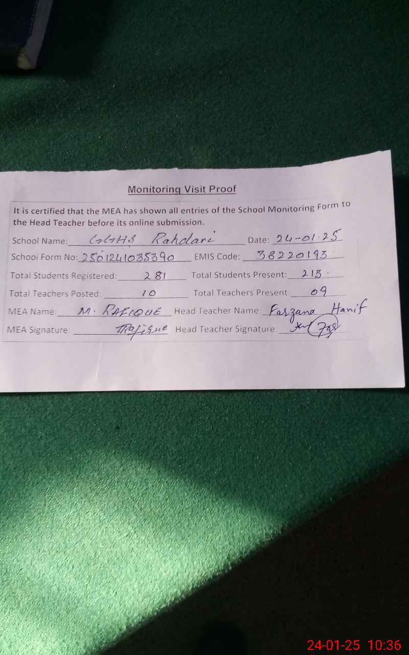 | EMIS Code: 38220193 | Name of School: GGHS RAHDARI | |||