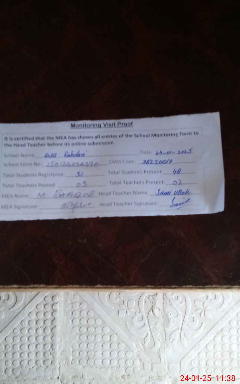 | EMIS Code: 38220017 | Name of School: GPS RAHDARI | |||