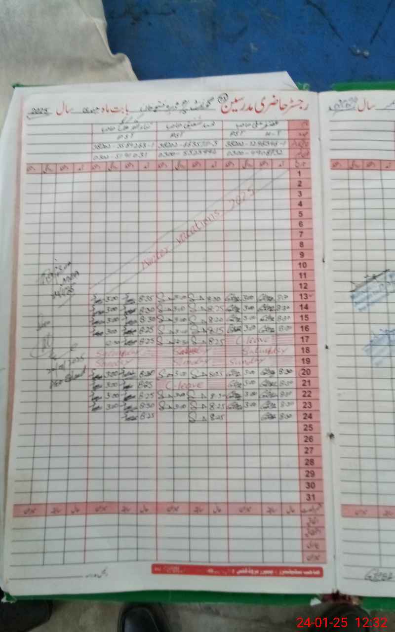 | CNIC | Full Name | Designation | R/C | Absence During Last Calender Month |