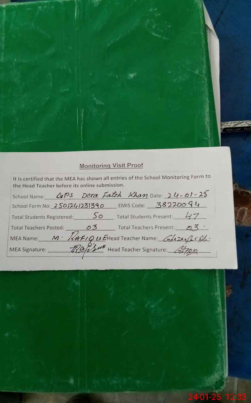 | EMIS Code: 38220094 | Name of School: GPS DERA FATEH KHAN | |||